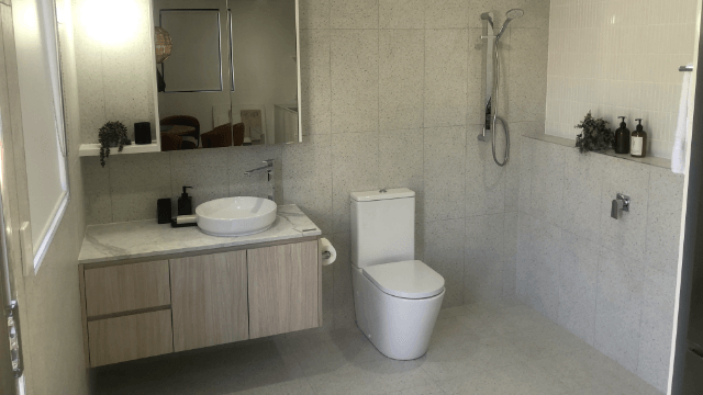 - Different sized bathrooms with e.g. shower, toilet, basin, cupboards